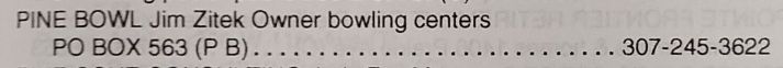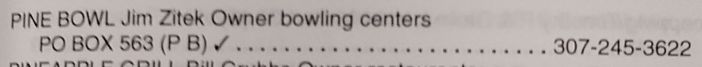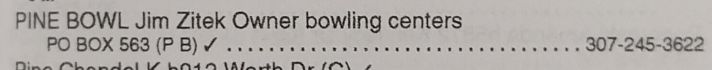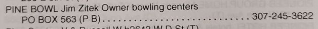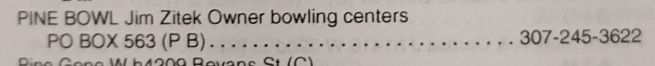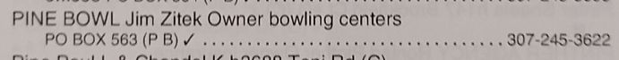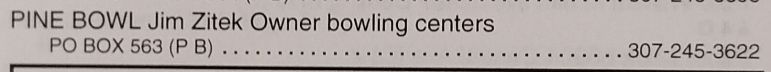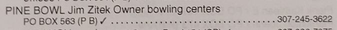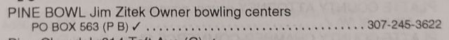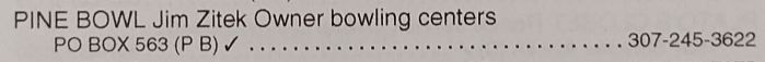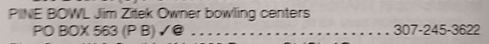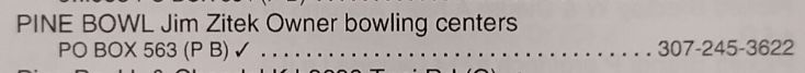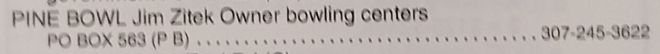 Jim Zitek was the president/owner per the 1997 through 2023 Polk Cheyenne City Business Directory. Lockers and replacement pinsetter hardware came from Cowboy Lanes per John Mason. New synthetic lanes were installed in 2019. The A2s were removed and replaced with GS-X machines in October 2024. |